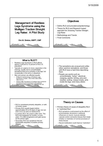 Treatment of Restless Legs Syndrome: medicine; guidelines; MDS recommendations; therapy; treatment EXTENDED SUMMARY BACKGROUND evaluated, and implications for clinical practice were reported. All studies with ‡5 subjects and a minimum ... Retrieve Here