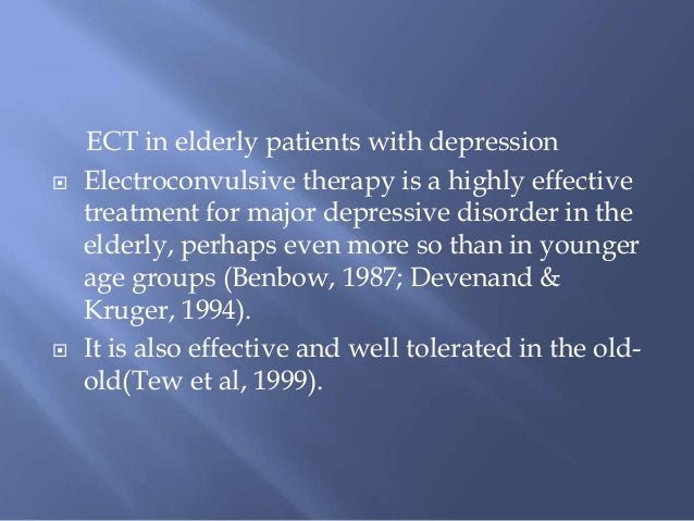Major Depressive Disorder in Adults Types of psychotherapy that have been used for the treatment of major depressive disorder, especially in the pediatric population, (ECT) is a highly effective treatment for depression. Indications for ECT include the following: ... Return Doc