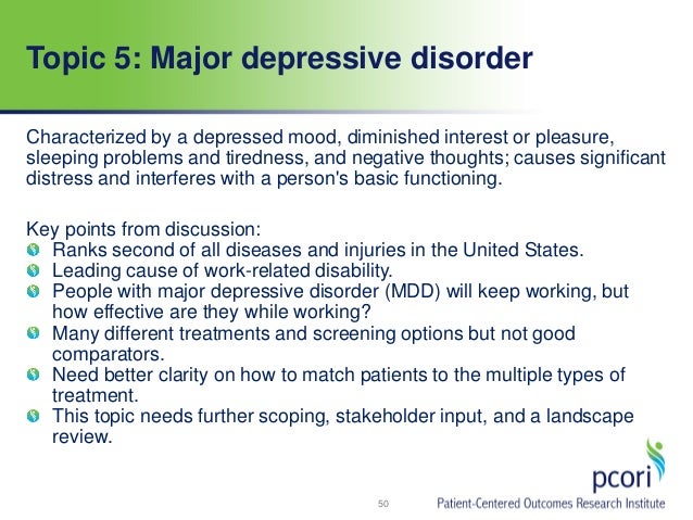 Treating Major Depressive Disorder 5 Establish the appropriate treatment setting. • Determine the least restrictive setting that will be most likely ... Doc Retrieval