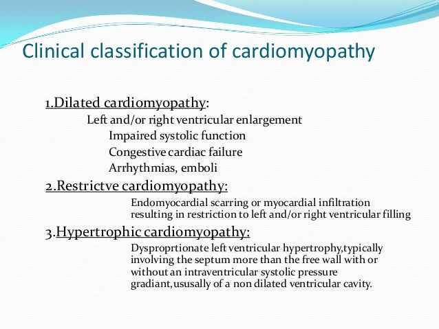 Treatment of Congestive Cardiac Failure Congestive cardiac failure, whether due to systolic or (including dilated cardiomyopathy, hypertrophic cardiomyopathy, restrictive cardiomyopathy, post-partum cardiomyopathy, tachycardia-related cardiomyopathy drugs reverse ventricular remodelling ... Retrieve Full Source
